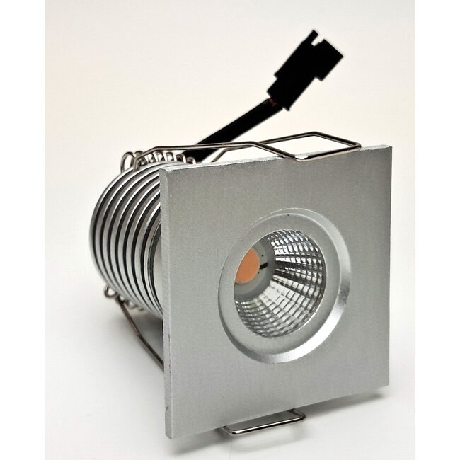 Compacteinbouwspot vierkante in Aluminum. 5W, 3000K, 390lm, 45° lens. Perfect voor keukens, vitrines, badkamers en luxe projecten. Professionele mini LED-downlight geschikt voor langdurig gebruik. Lees meer.
